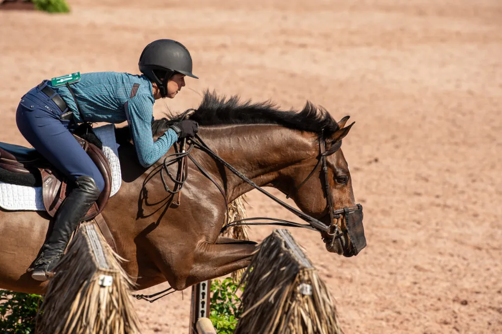 Джонсон говорит, что иногда во время тренировок она наблюдает у лошадей затрудненное дыхание и проблемы с верхними дыхательными путями из-за дорсального смещения мягкого нёба (ДСНН). Мягкое нёбо — это длинная, гибкая структура, которая играет решающую роль в разделении носовых и ротовых проходов, предотвращая попадание пищи в нос во время глотания, и имеет решающее значение для того, чтобы лошади могли дышать исключительно через нос.